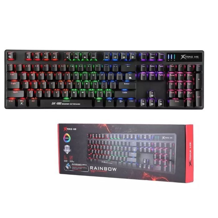 Xtrike Me GK‑980 Wired Mechanical Keyboard – Enjoy a premium typing and gaming experience with 104 tactile blue switches, rainbow backlighting, and anti-ghosting support. Built for durability and style.