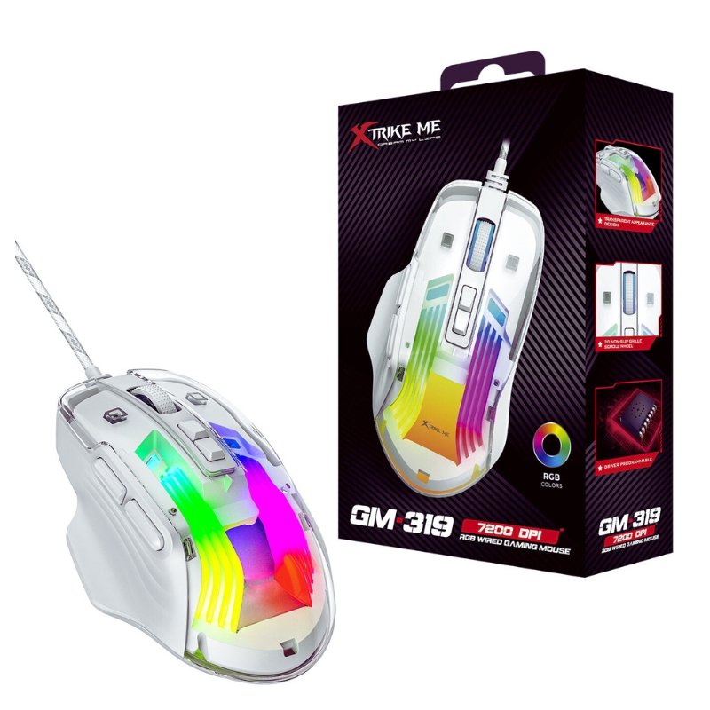 Xtrike Me GM‑319 Gaming Mouse (White) – Precision meets performance! Features 7200 DPI, 7 programmable buttons, RGB backlighting, and ergonomic design for serious gamers.